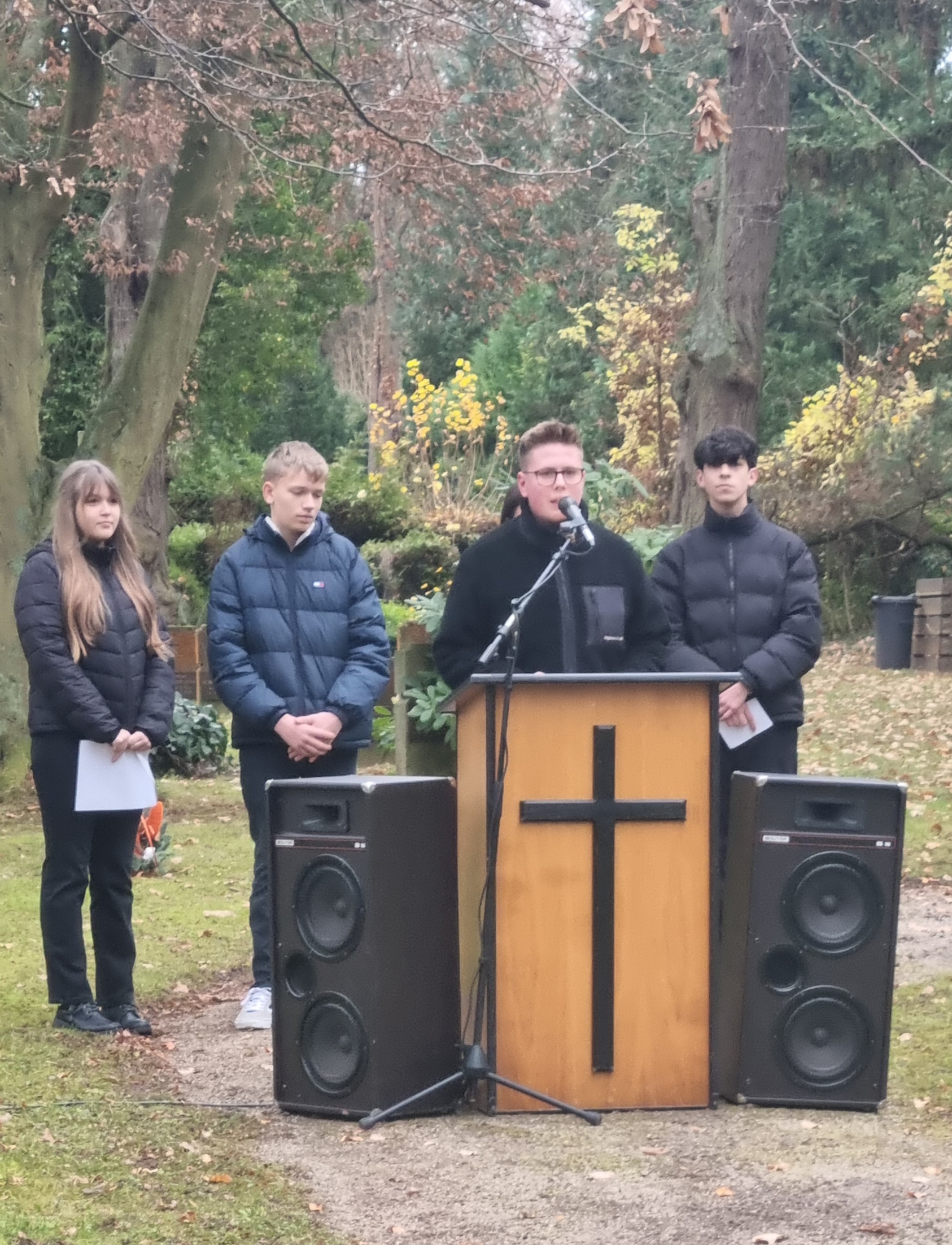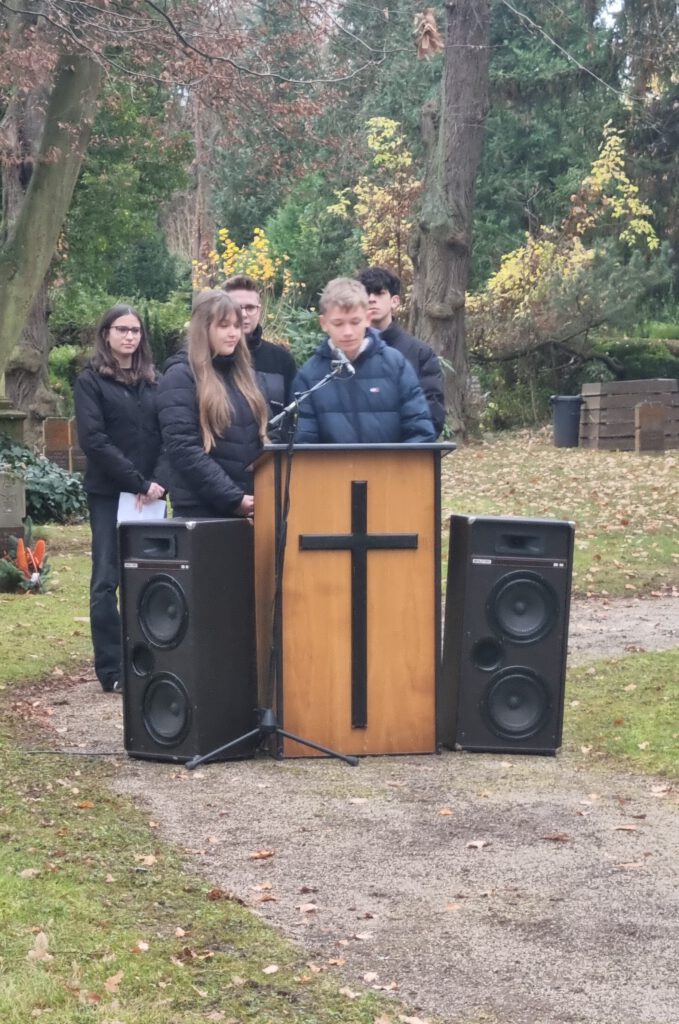 Auch in diesem Jahr kamen wir am Volkstrauertag als Schülervertretung der Friedrich-Wilhelm-Schule am Mahnmal des Eschweger Friedhofs zusammen. Zu den Anwesenden gehörten neben dem Bürgermeister Alexander Heppe auch die Landrätin Nicole Rathgeber, , Dekan Ralph Beyer, unser stellvertretender Schulleiter Michael Degenhardt, unser ehemaliger Schulleiter Dr. Hans-Joachim Vock sowie Michael Dölle für die Ehemaligen-Vereinigung.
